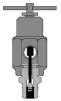 將SO-BV工具連接到注脂(zhī)嘴上(shàng)之前,首先逆時針(zhēn)旋轉SO-BV工具(jù)上的T型手柄使(shǐ)頂杆上行至最大位(wèi)置,然後拆除密封(fēng)注脂接頭上的金屬蓋帽(mào),將(jiāng)SO-BV工具連接在注脂接頭(tóu)的螺紋上並旋(xuán)緊。然後順時針旋(xuán)轉SO-BV工具上的T型手柄,頂杆下行,使(shǐ)得注脂接頭(tóu)內的球形止回閥“離座”,可以使得閥體內的物(wù)質通(tōng)過泄放孔和後(hòu)端的閥門被釋(shì)放出(如下頁圖7)。