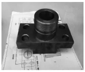 通過(guò)在失效的球閥注脂嘴四周表麵(miàn)固定T101b帶壓更換成套工具,實現注脂嘴(zuǐ)的帶(dài)壓拆卸(xiè)和更換工作。為保證施工過程中的密封效(xiào)果,需提前加工護板短節和抱箍,並準備高壓O型密封(fēng)圈,還需(xū)加工護板短節和(hé)抱箍結構(如下頁圖(tú)10、11)。護板短接及底部的O型圈、球閥表麵和2英寸閥門在抱箍的作用下,使注脂嘴四周形(xíng)成一個密封腔 。帶壓更換(huàn)成套工具裝配後如圖(tú)12所示。